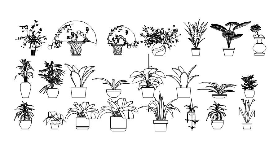 2D elevation of plants, dwg file, CAD file