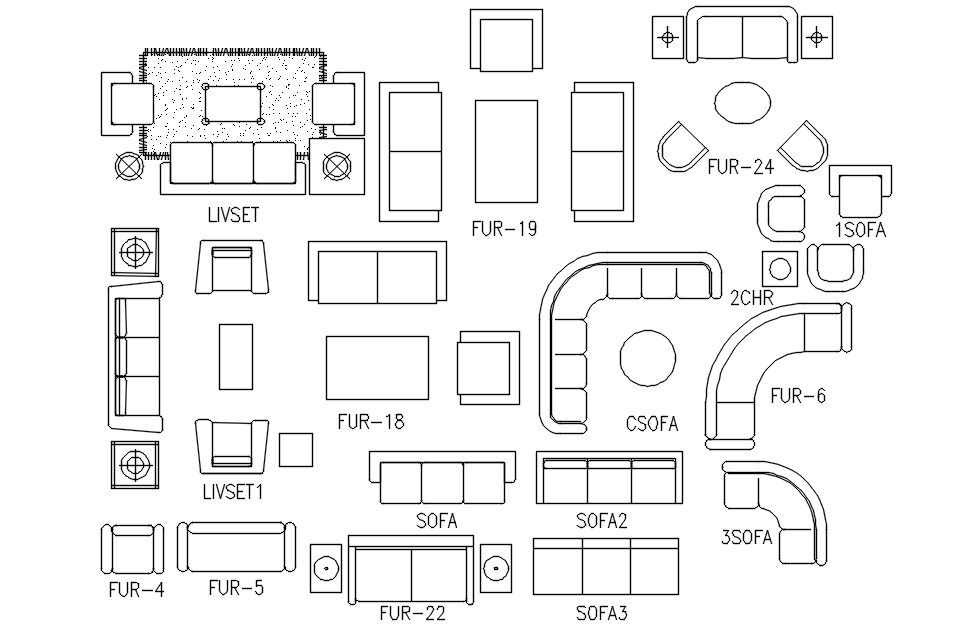 Living Room Furniture 2D Blocks in AutoCAD DWG File