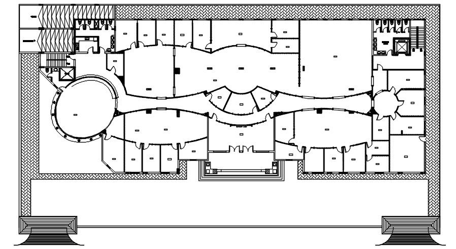 This architectural drawing is Construction layout of ground floor plan in AutoCAD 2D drawing, dwg file, CAD file. A layout plan is a diagram of the complete property that shows where plots or building blocks are located as well as roads, open areas, entry and departure points, parking, landscaping, etc. It also shows what all land parcels are used for. For more details and information download the drawing file.