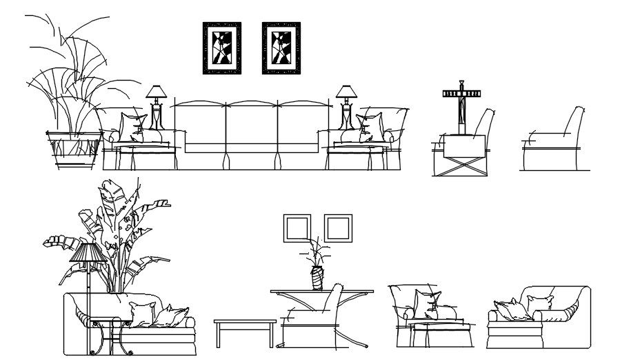 This architectural drawing is Living room furniture CAD blocks in AutoCAD 2D, dwg file, CAD file. Sofas, chairs, coffee tables, occasional tables, bookcases, televisions, electric lamps, rugs, and other pieces of furniture are commonplace in living rooms. For more details and information download the drawing file.