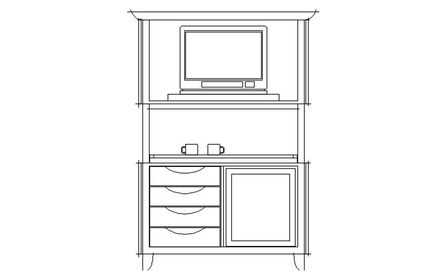 Detailed TV Cabinet Design CAD Block in AutoCAD DWG file