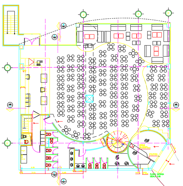 Disco layout plan dwg file. Find here layout plan along of furniture detailing in autocad format.