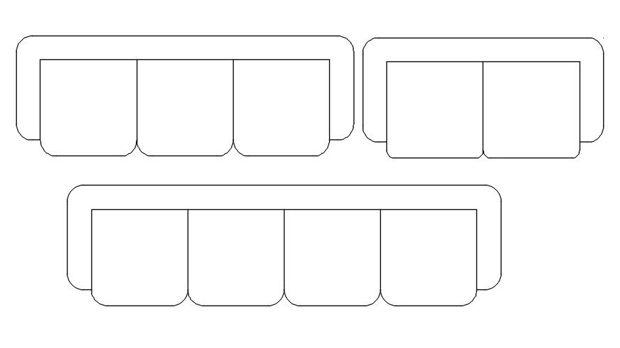 2D Blocks of Sofa Designed in AutoCAD DWG and CAD File