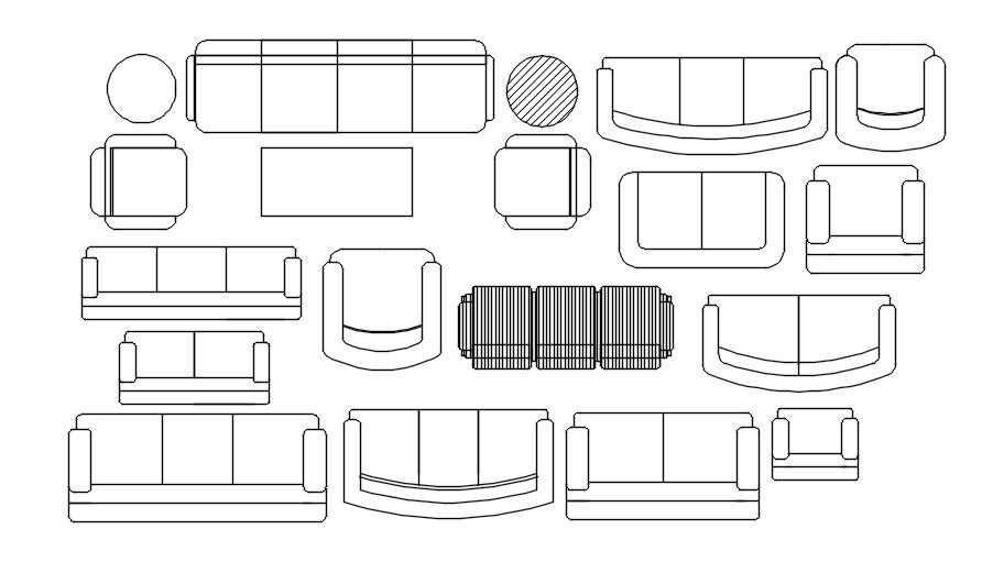 Small Sofa CAD Blocks in 2D AutoCAD DWG File Format