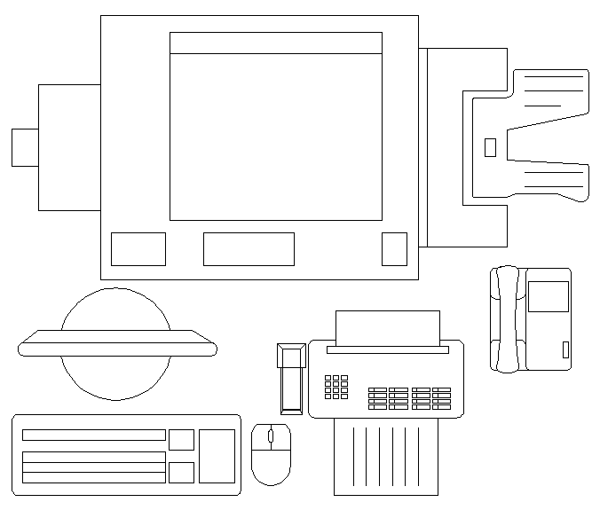 Electronic appliances in an Office, Photocopy machine, telephone, printer, computer, keyboard, mouse