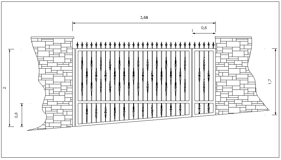 Large access forged door design dwg file with view of door view with arrow shaped design and wall view with necessary dimension