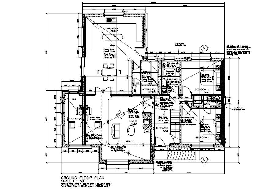 AutoCAD Ground Floor Sewage and Drainage Layout Plan DWG File