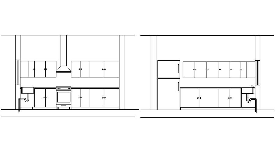 Kitchen elevation layout in AutoCAD, Dwg file.