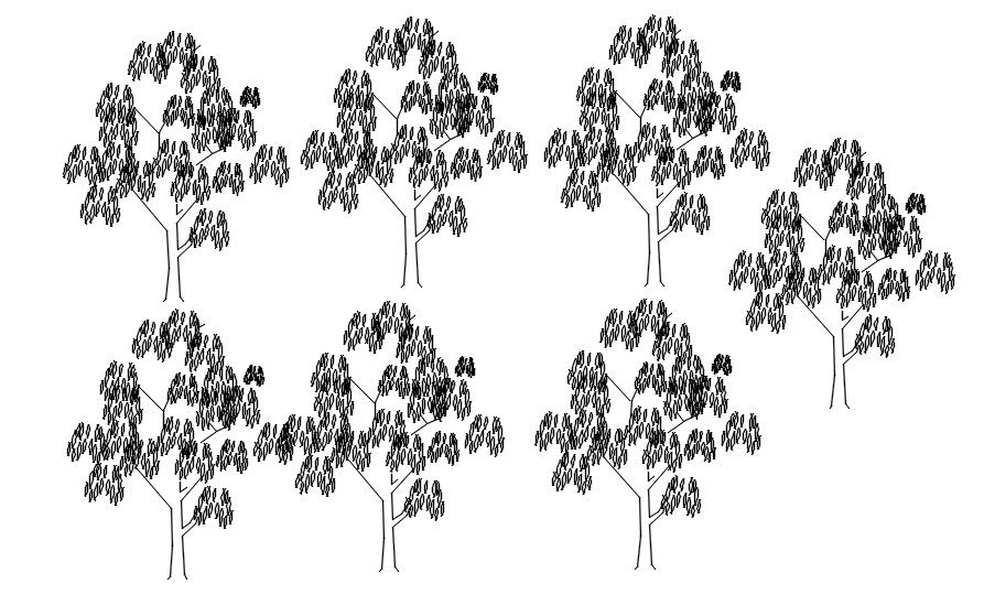 2D blocks of trees in detail AutoCAD drawing, CAD file, dwg file