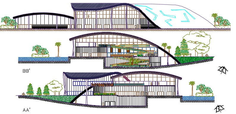 Convention Center Layout plan dwg file.the architecture layout plan, section plan and elevation design of Convention Center....