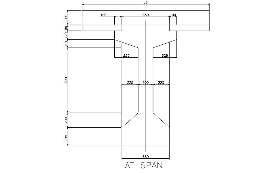 This Architectural Drawing is AutoCAD 2d drawing of Girder cross section at span in AutoCAD, dwg file. Plate girder can be used for spans between 10 metres and more than 100 metres (33 feet to more than 330 feet). Stiffeners are occasionally welded between the compression flange and the web to increase the strength of the girder