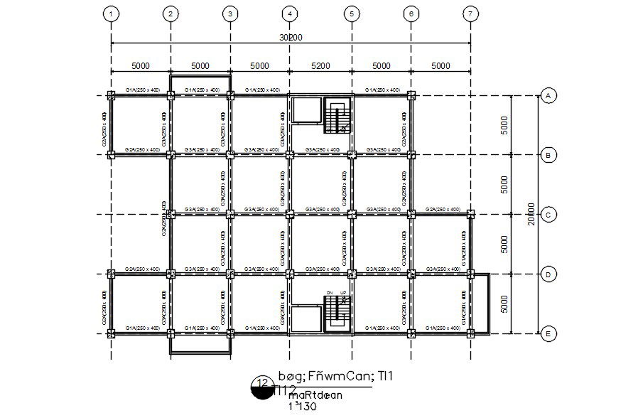 Beam-column layout plan of second floor in AutoCAD 2D drawing, dwg file, CAD file