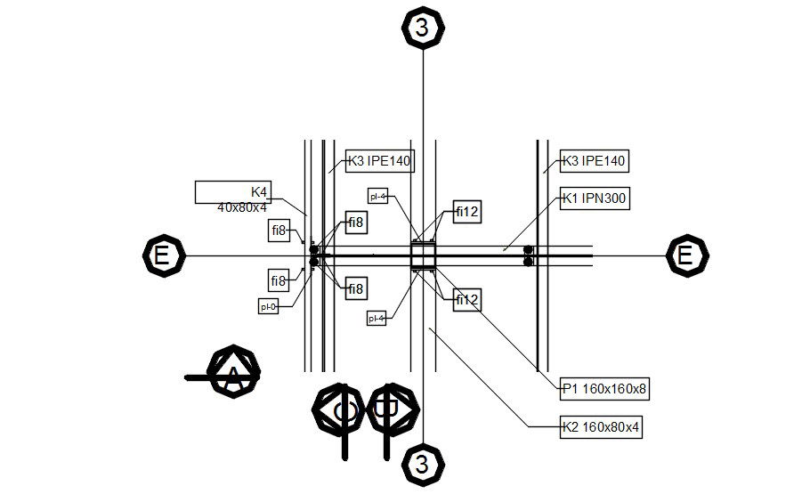 Lateral support of axially loaded columns design in AutoCAD 2D drawing, dwg file, CAD file