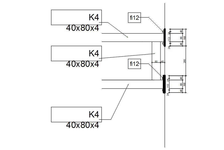 2D drawing of steel joint with anchor bolts in AutoCAD, dwg file, CAD file