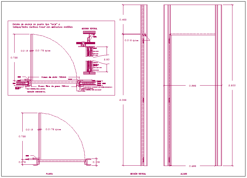 Plaster panel wall view in design of door dwg file with view of door,door hing and