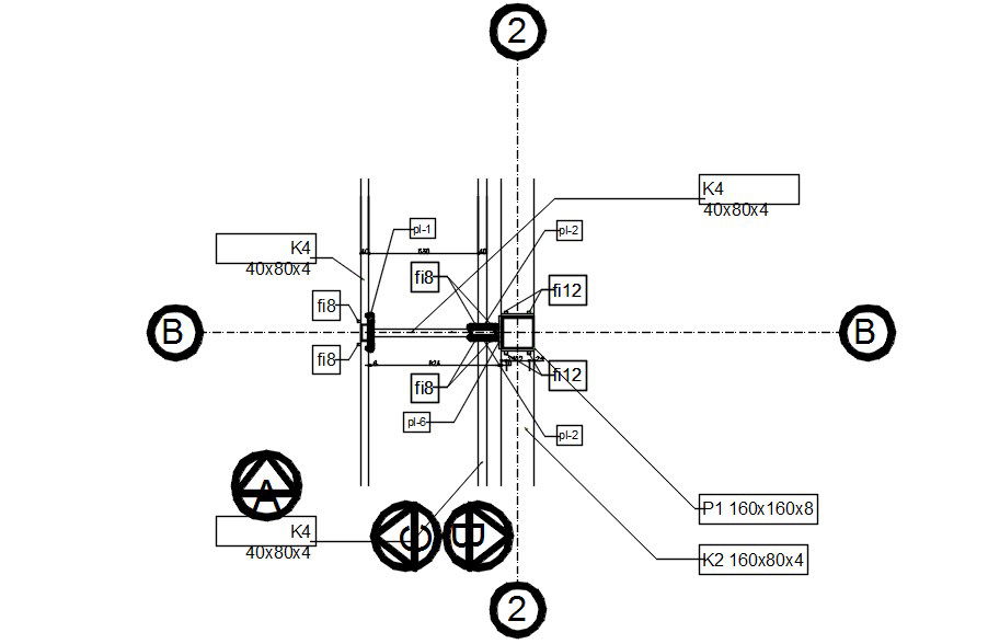 AutoCAD drawing of column to beam joints, dwg file, CAD file