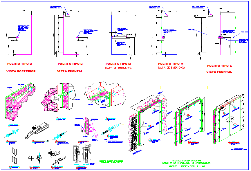 Fire detail view design of door dwg file with view of door,door closer view,hinge of