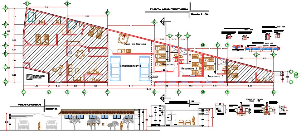 Unitsservice and Parking Furnished layout plan dwg file.Find here layout plan along of furniture detailing in autocad format.