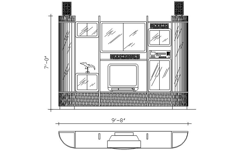 This architectural drawing is AutoCAD 2D drawing of TV cabinet, dwg file, CAD file. Every home needs a TV unit as a necessary piece of furniture. In addition to enclosing your TV, modern TV cabinets come in a variety of forms, from beautiful and traditional to simple. Other goods like books, CDs, game consoles, and home decor items can also be stored or displayed using this method. For more details and information download the drawing file Thank you for visiting our website cadbull.com.