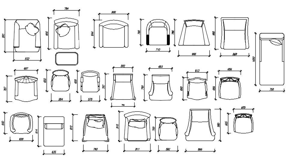This Architectural Drawing is AutoCAD, 2d drawing of different types of chairs in 2d cad blocks in AutoCAD, dwg file. A chair is a type of seat, typically designed for one person and consisting of one or more legs, a flat seat and a back-rest. They may be made of wood, metal, or synthetic materials, and may be padded or upholstered in various colors and fabrics.