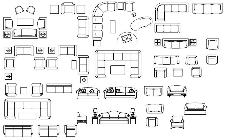 2D drawing of sofa set in AutoCAD, CAD file, dwg file