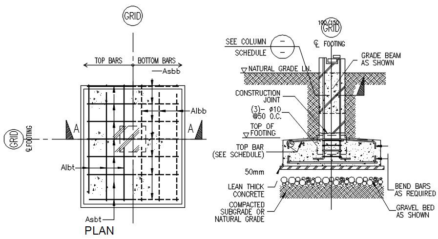 Footing plan with column design in AutoCAD 2D drawing, CAD file, dwg file