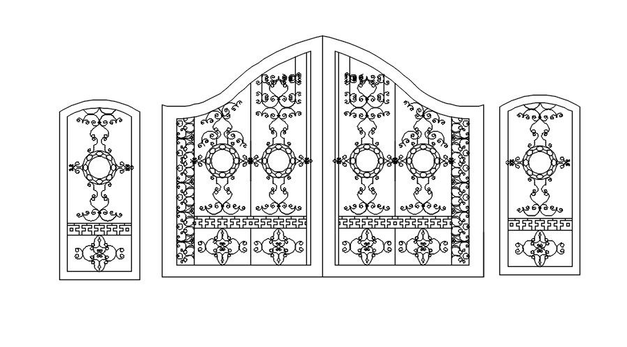 2D block of modern entrance gate in AutoCAD 2D drawing, CAD file, dwg file
