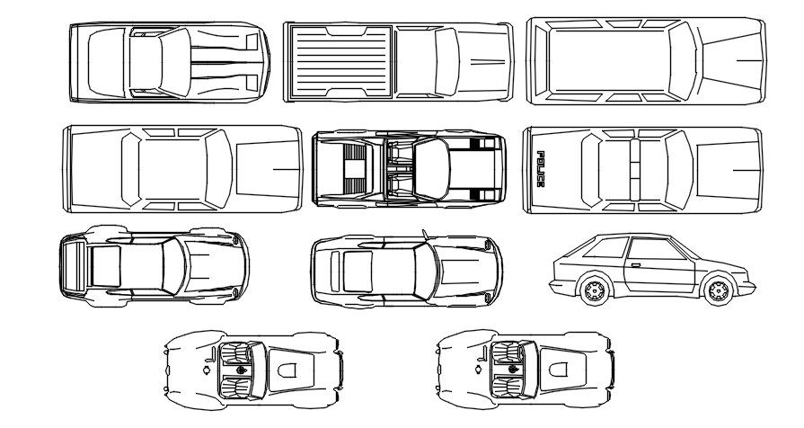 AutoCAD, dwg file of 2d cad blocks of vehicles.