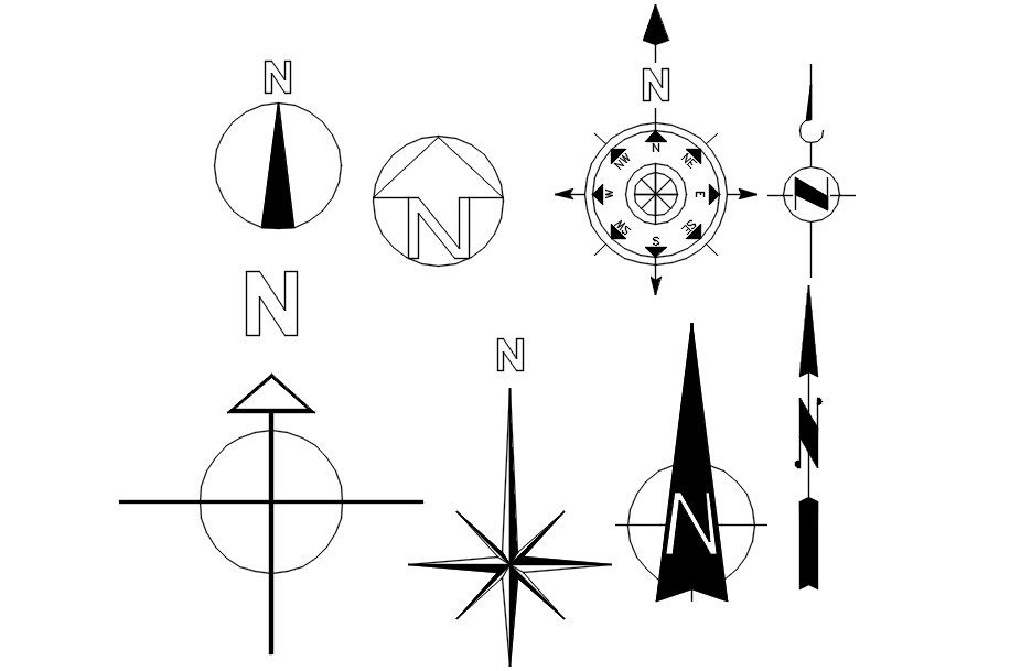 2d Direction symbols cad blocks in AutoCAD, dwg file.
