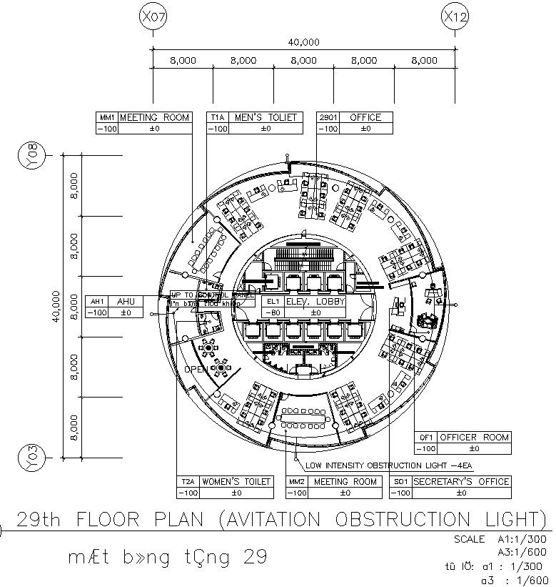 This architectural drawing is the 29th-floor plan of aviation obstruction light in AutoCAD 2D drawing, CAD file, and dwg file. Any object that can block air traffic should be illuminated with an obstruction light, which is a light that is specifically made for tall buildings, high-rise constructions, and other objects. For more details and information download the drawing file. Thank you for visiting our website cadbull.com.