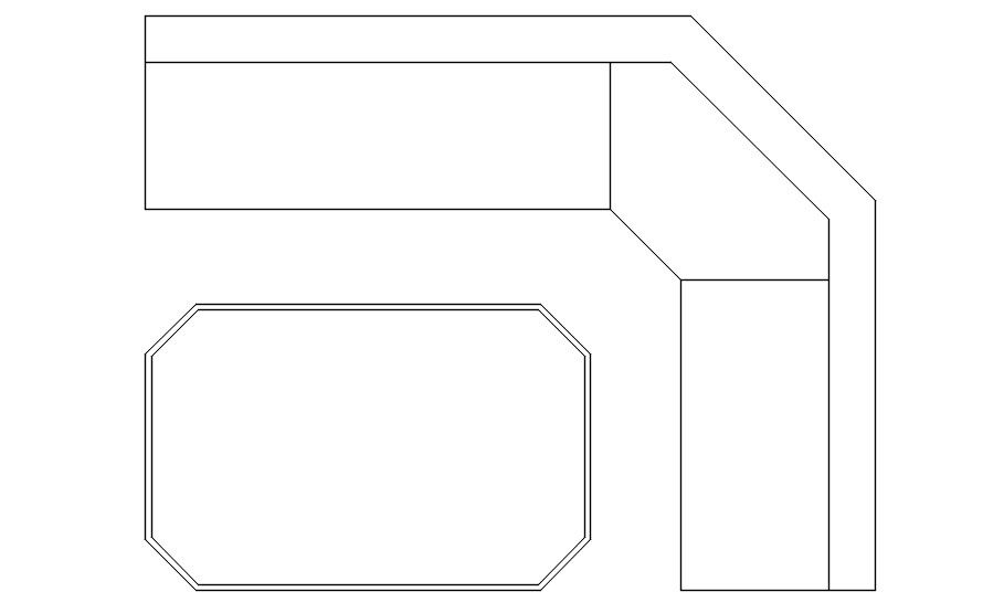 This Architectural Drawing is AutoCAD 2d drawing of Corner sofa 2d layout with center layout in AutoCAD, dwg file.