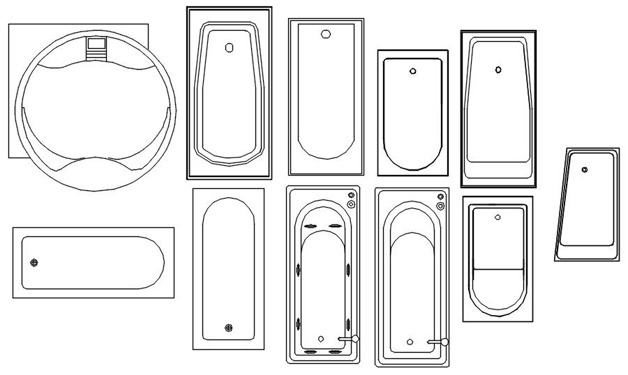 This Architectural Drawing is AutoCAD 2d drawing of Bathtub plan 2d cad blocks in AutoCAD, dwg file. Standard tubs usually have external measurements around 60 inches long, 30 inches wide and 14 to 16 inches high. When shopping for a soaking tub, find a tub that measures between 60 inches long and 72 inches long.