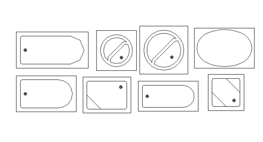 This Architectural Drawing is AutoCAD 2d drawing of jacuzzi and bathtub design cad blocks in AutoCAD, dwg file. In reality, there is nothing to distinguish one from the other. They're all large containers of hot water that have jets, bubbles and often different coloured lights and other accessories. Whirlpool bath, Jacuzzi and hot tub are, on the whole, different words to describe the same thing.