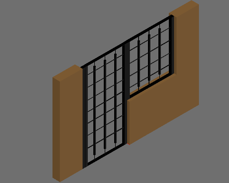 Gate door design with wall view dwg file with view of gate and wall with view of round
