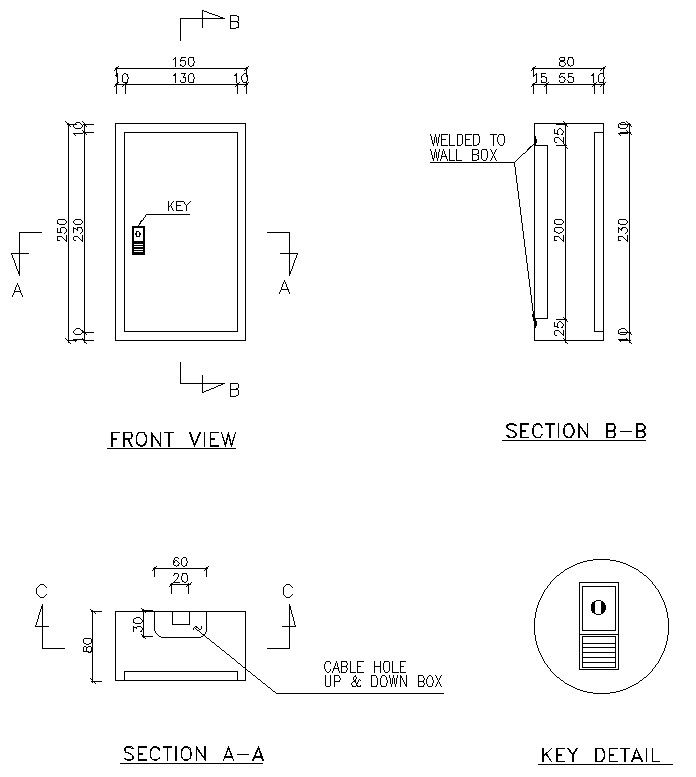This AutoCAD DWG file provides a comprehensive 2D drawing of a meter box, essential for electrical design and installation projects. The drawing includes detailed plan and elevation views, showcasing the layout and dimensions of the meter box. This CAD block is invaluable for electrical engineers, architects, and contractors involved in designing and implementing electrical systems, ensuring accurate and standardized installations. Whether you're planning residential, commercial, or industrial projects, this drawing serves as a reliable reference for meter box specifications and configurations.
