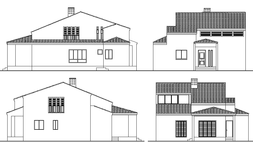This cottage CAD drawing provides a complete architectural reference for planning and design development. The file includes detailed floor plans that outline room arrangements, spatial circulation, wall placements, and living layout concepts. Additionally, side elevation drawings are provided to support visual understanding of the cottage exterior form, window placement, entry design, and roof style. These drawings help architects and designers analyze the building proportions and structure. The layout presented in this file is practical for residential planning and can be used as a base for design customization or interior planning.