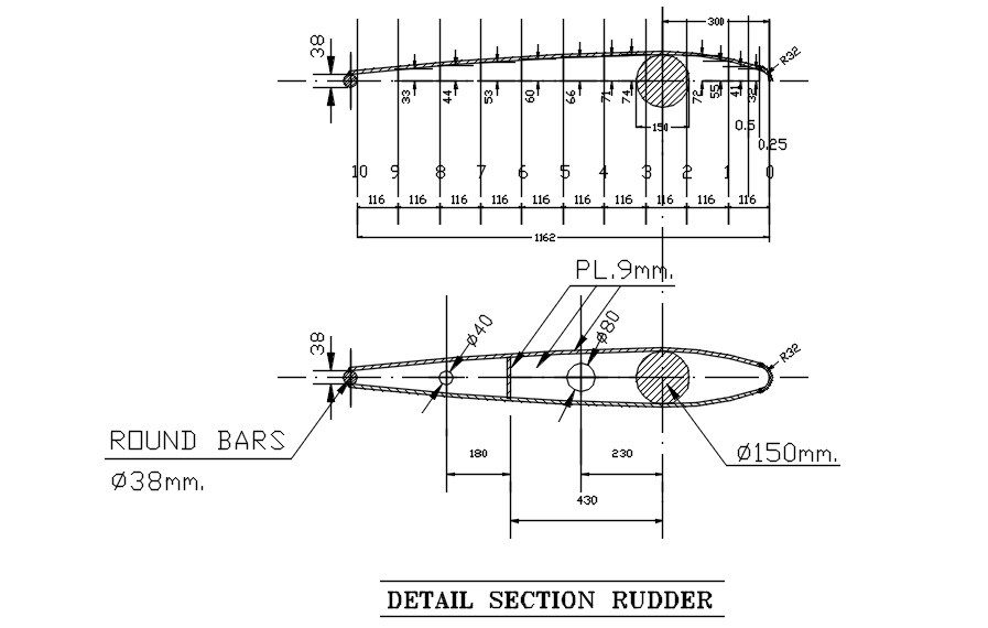 Detail rudder section in AutoCAD 2D drawing, dwg file, CAD file