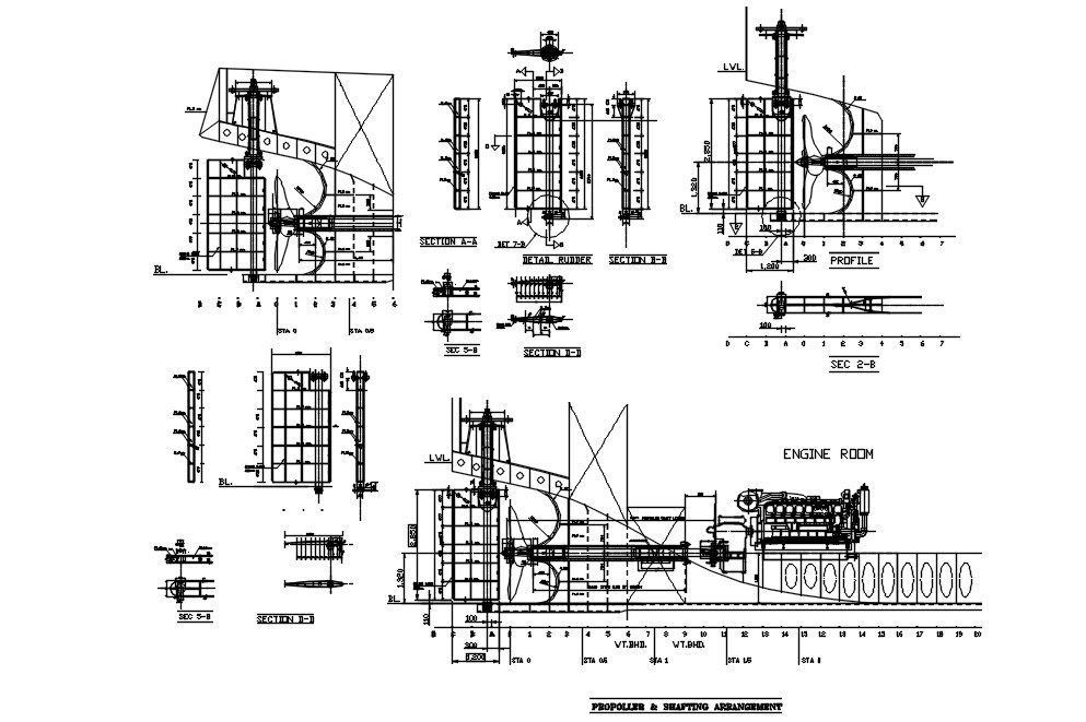 This architectural drawing is PROPELLER & SHAFTING ARRANGEMENT design in detail AutoCAD drawing, dwg file, CAD file. Propeller, tail, and intermediate shafts make up the shafting. Propeller shafting and construction are typically made of forged steel and bronze. For more information and details download the drawing file. Thank you for visiting our website cadbull.com.