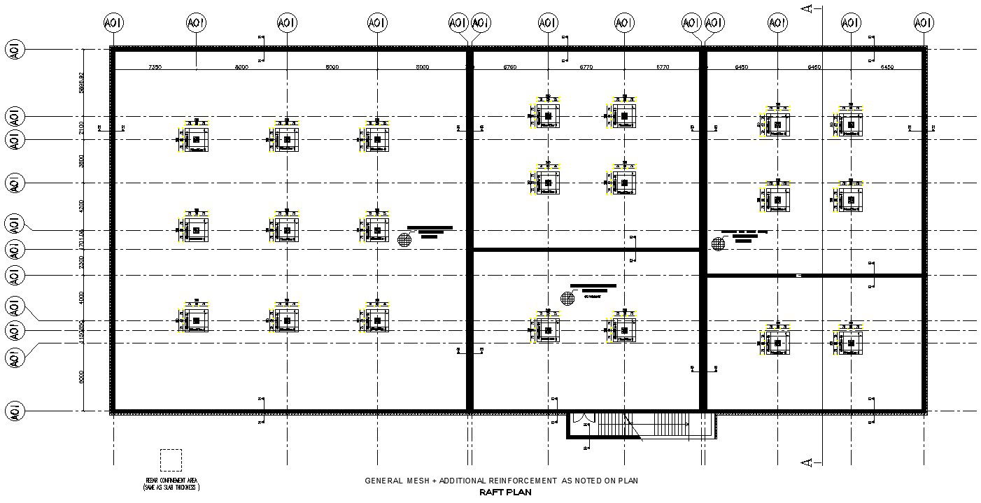 Additional Reinforcement and raft plan details in AutoCAD, dwg file.