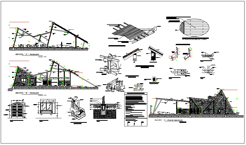 and sectional detail like a door,window,restaurant furniture and other necessary