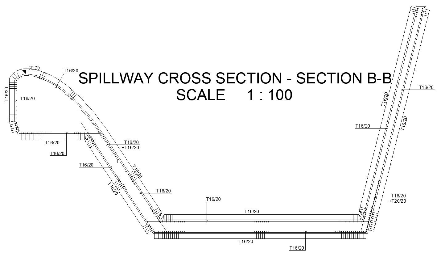 This Architectural Drawing is AutoCAD 2dd rawing of Cross section of spillway details in AutoCAD, dwg file. Spillways are structures that either form part of a dam, or are found just beside one. They are used, when a reservoir is full, to pass floodwater safely, and in a controlled way, over a dam, around it or through it.