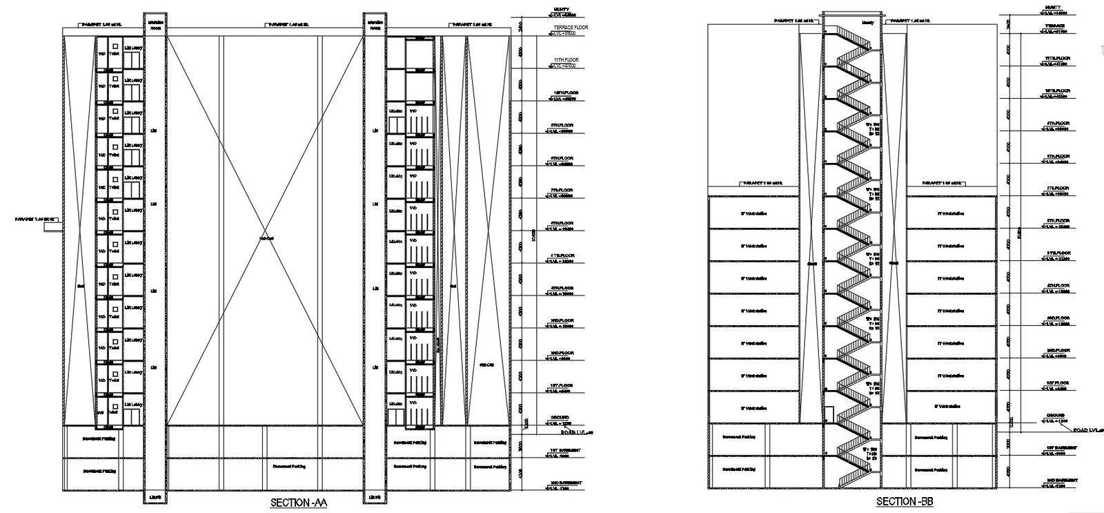Section AA and section BB of high rise building in AutoCAD 2D drawing, dwg file, CAD file