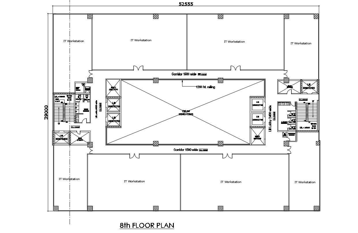 This architectural drawing is the 8th-floor plan of the IT workstation in detail AutoCAD 2D drawing, dwg file, and CAD file. For more details and information download the drawing file. Thank you for visiting our website cadbull.com.