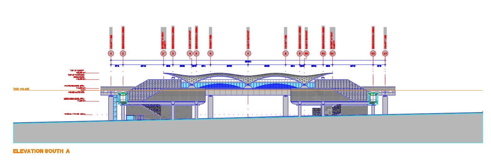 South Elevation A of metro station in AutoCAD 2D drawing, CAD file, dwg file