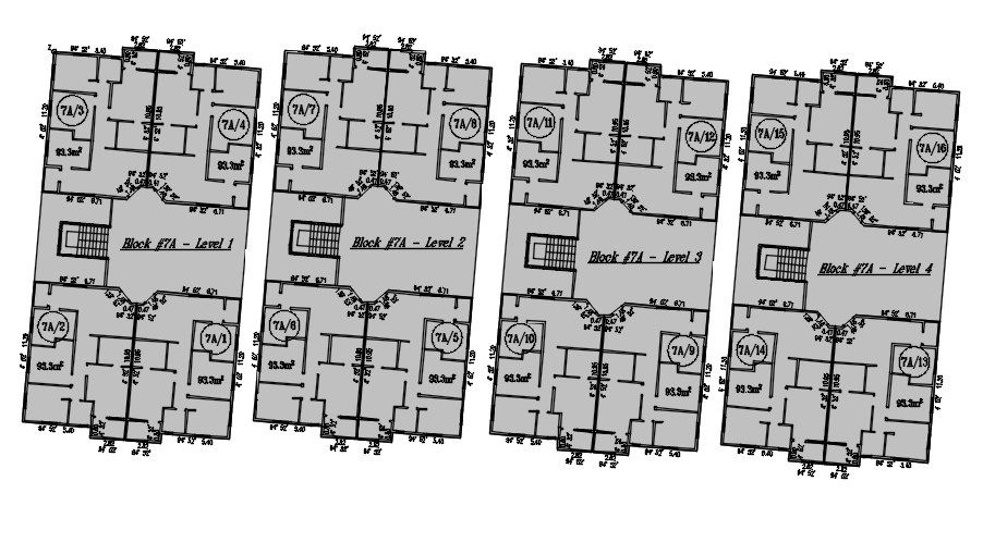This architectural drawing is the Floor plan of a four-story apartment in detail AutoCAD 2D drawing, dwg file, CAD file. For more details and information download the drawing file. Thank you for visiting our website cadbull.com.
