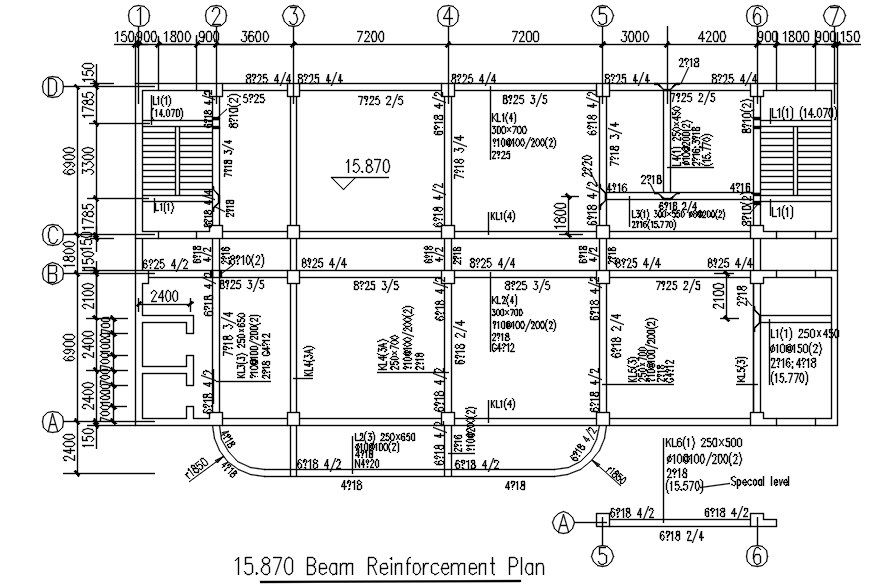 Beam reinforcement plan in AutoCAD 2D drawing, dwg file, CAD file