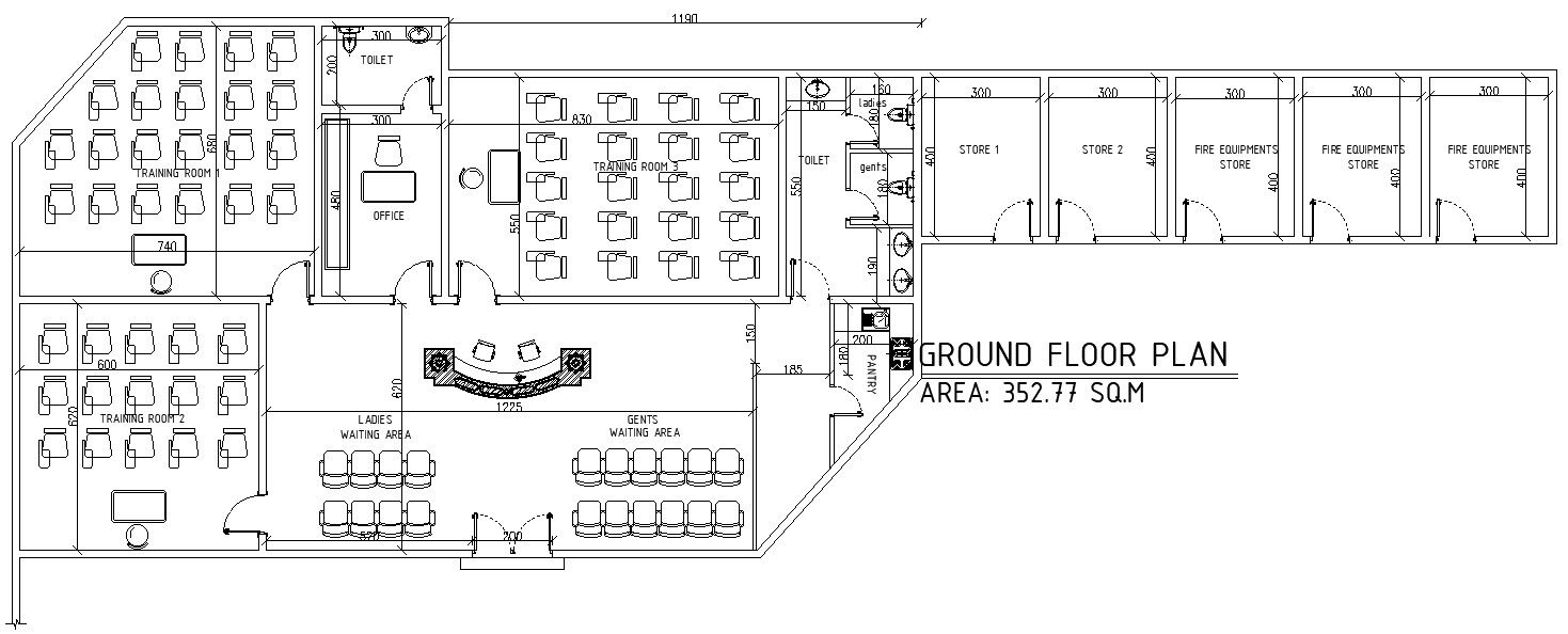 This Architectural Drawing is AutoCAD 2d drawing of Ground floor plan of training room details in AutoCAD, dwg file.