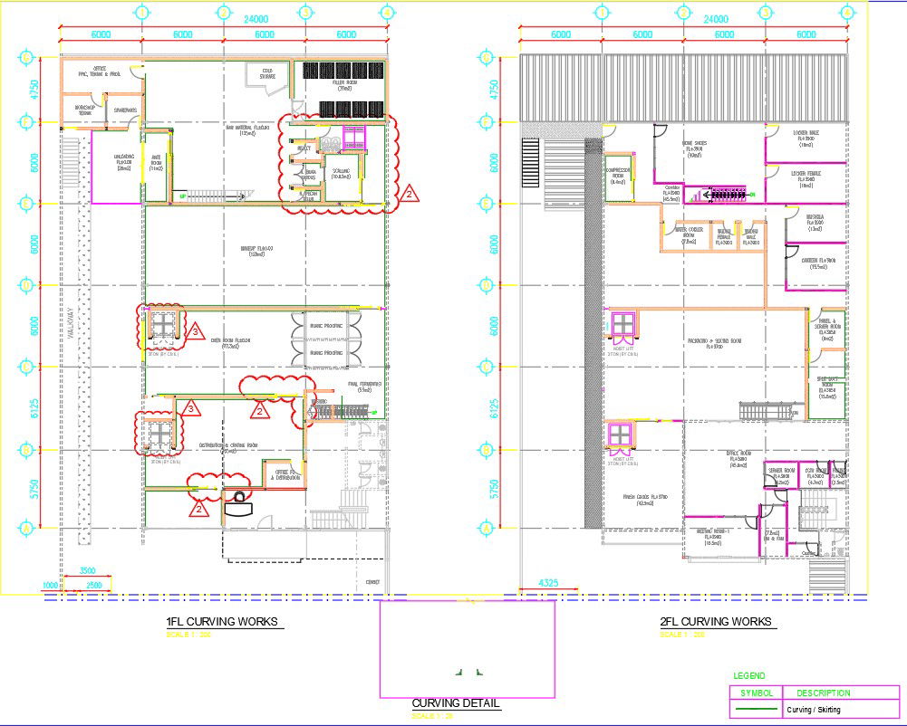 1st floor and 2nd floor curving works design in AutoCAD 2D drawing, dwg file, CAD file