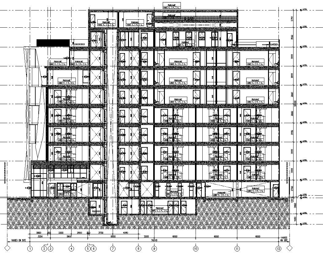 This Architectural Drawing is AutoCAD 2d drawing of Front Section of a building in details in AutoCAD, dwg file. The view obtained after removing the front half portion of an object is called a Full Sectional Views or Front Sectional Views or Simply Sectional Elevation. When the cutting plane cuts the object lengthwise, full sectional front view is obtained. It is also called longitudinal section.