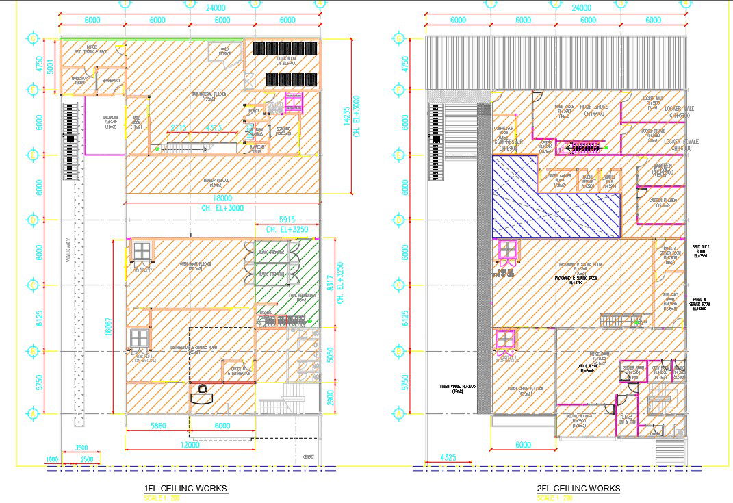 1st floor and 2nd floor ceiling work design in AutoCAD 2D drawing, dwg file, CAD file